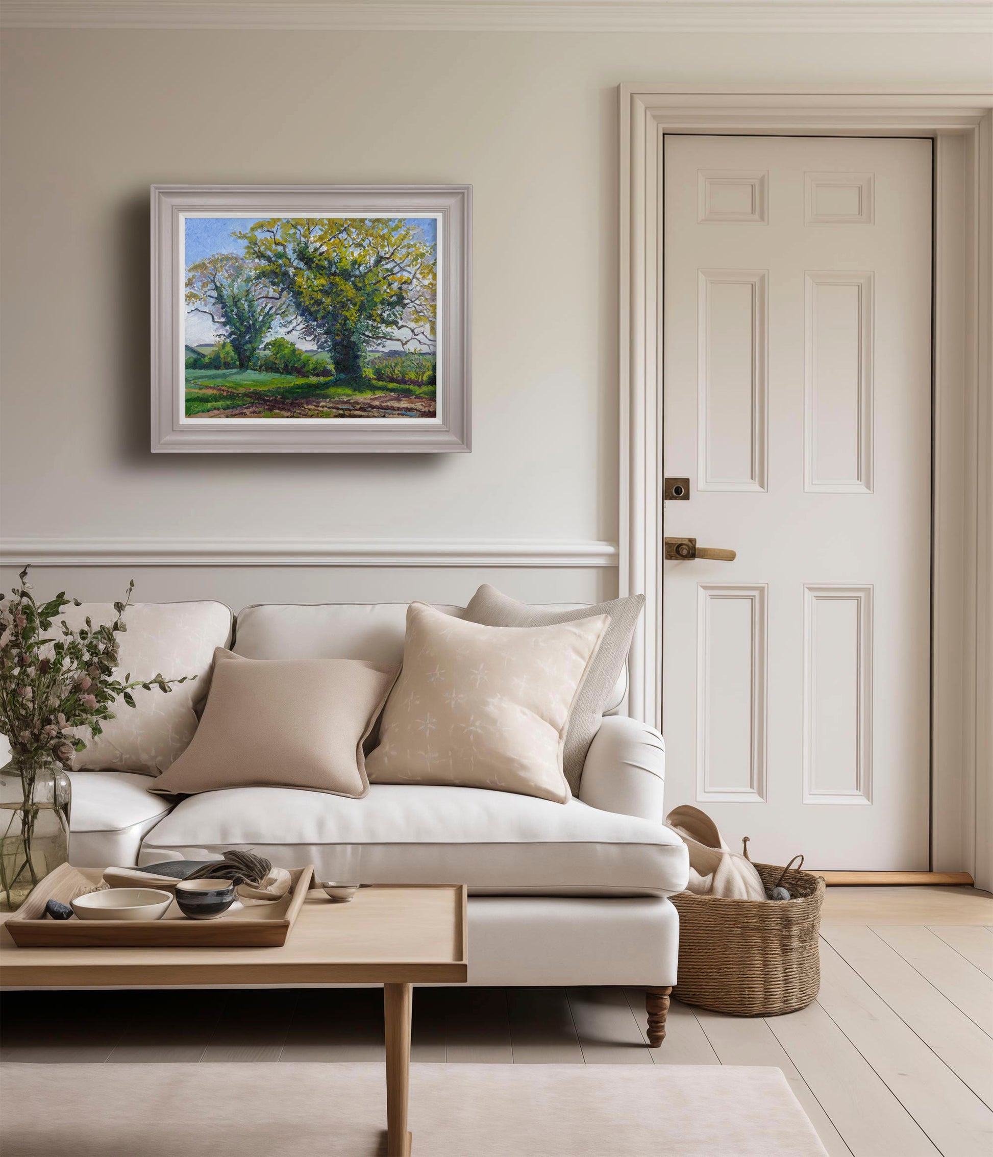 FRAMING is available for this painting in a 50mm wide profile as shown - painted in Farrow & Ball 'Elephant's Breath' with slip in 'Pointing' - please contact me for pricing.