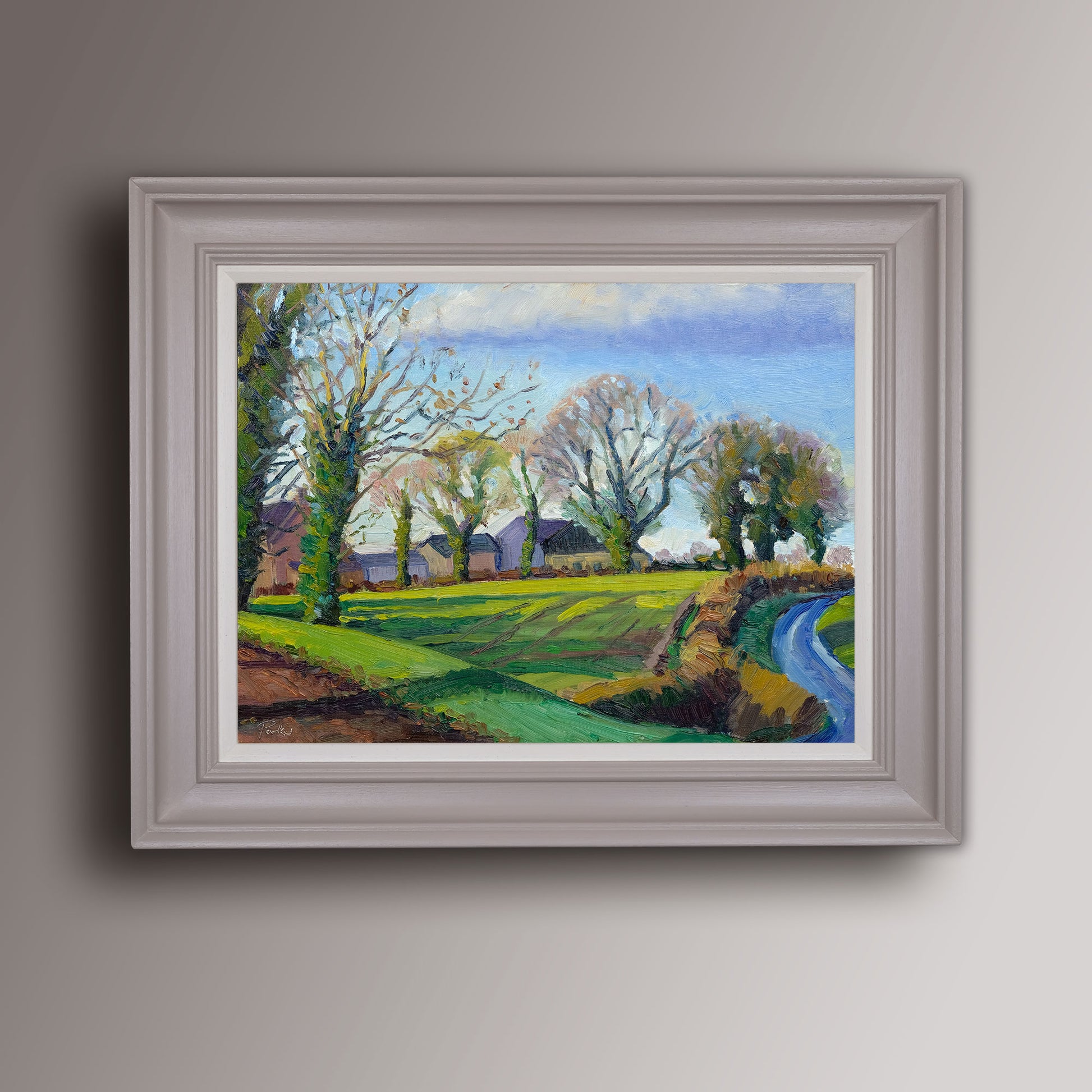 This painting is supplied framed in my signature 50mm scoop frame, hand-finished in Farrow & Ball “Elephant’s Breath” with a “Pointing” slip inset.
