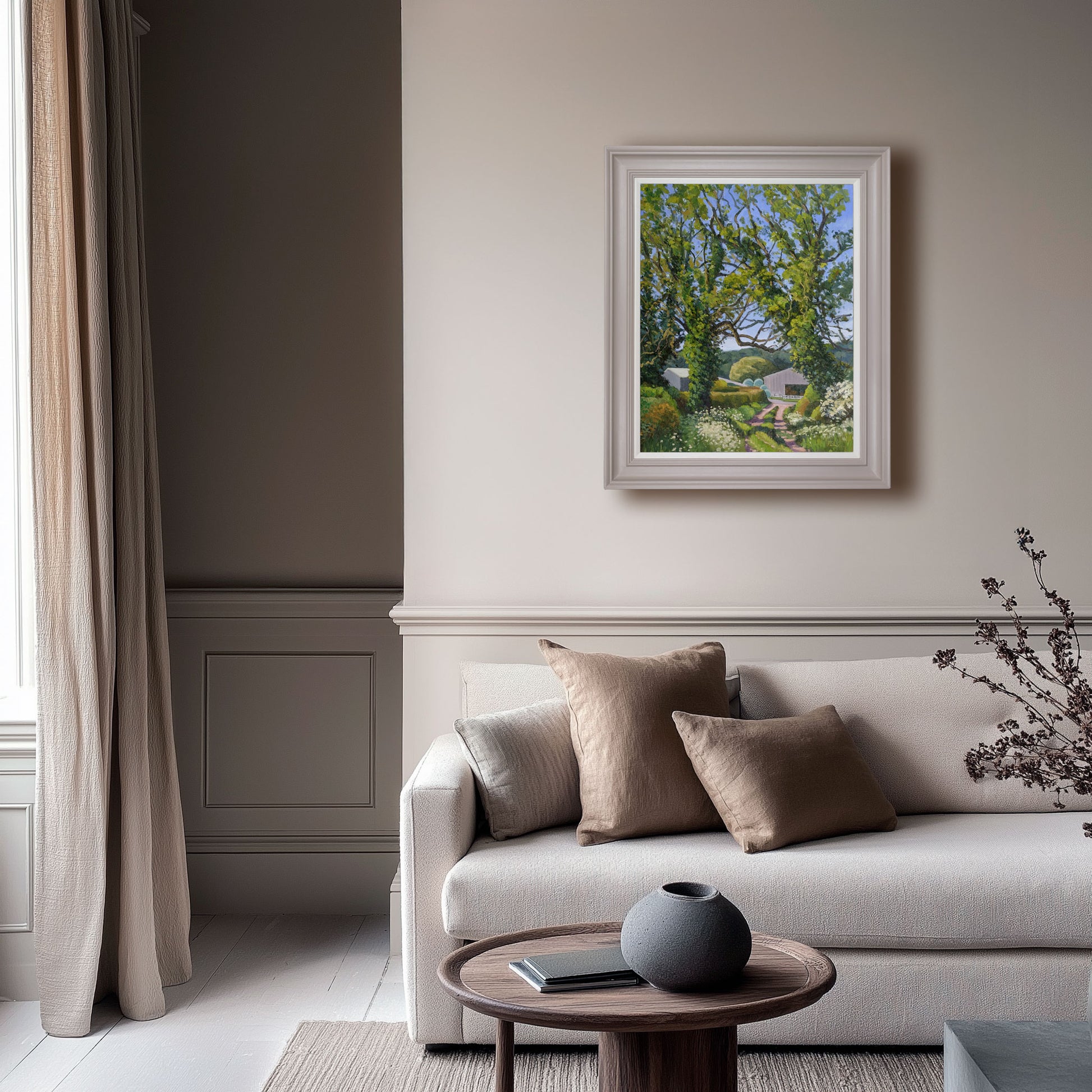 FRAMING is available for this painting in a 50mm wide profile as shown - painted in Farrow & Ball 'Elephant's Breath' with slip in 'Pointing' - please contact me for pricing.