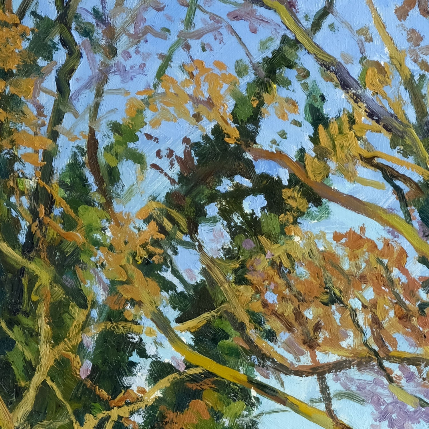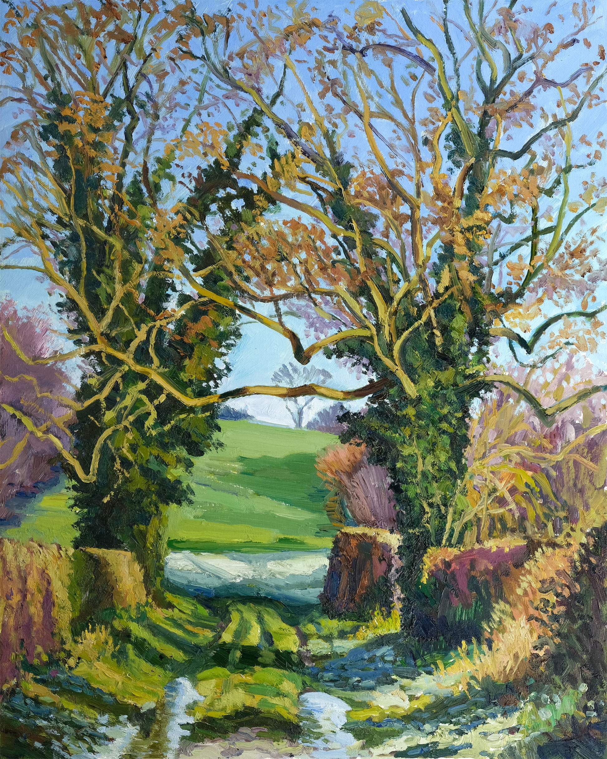 On a chilly December morning at one of my favourite spots, these two trees create a frame for a view that evolves with the seasons. I make it a point to revisit this place throughout the year to capture its essence. After a spell of rain, a hard frost created cool blues in the shadows and cast lighter hues across the sunlit areas.