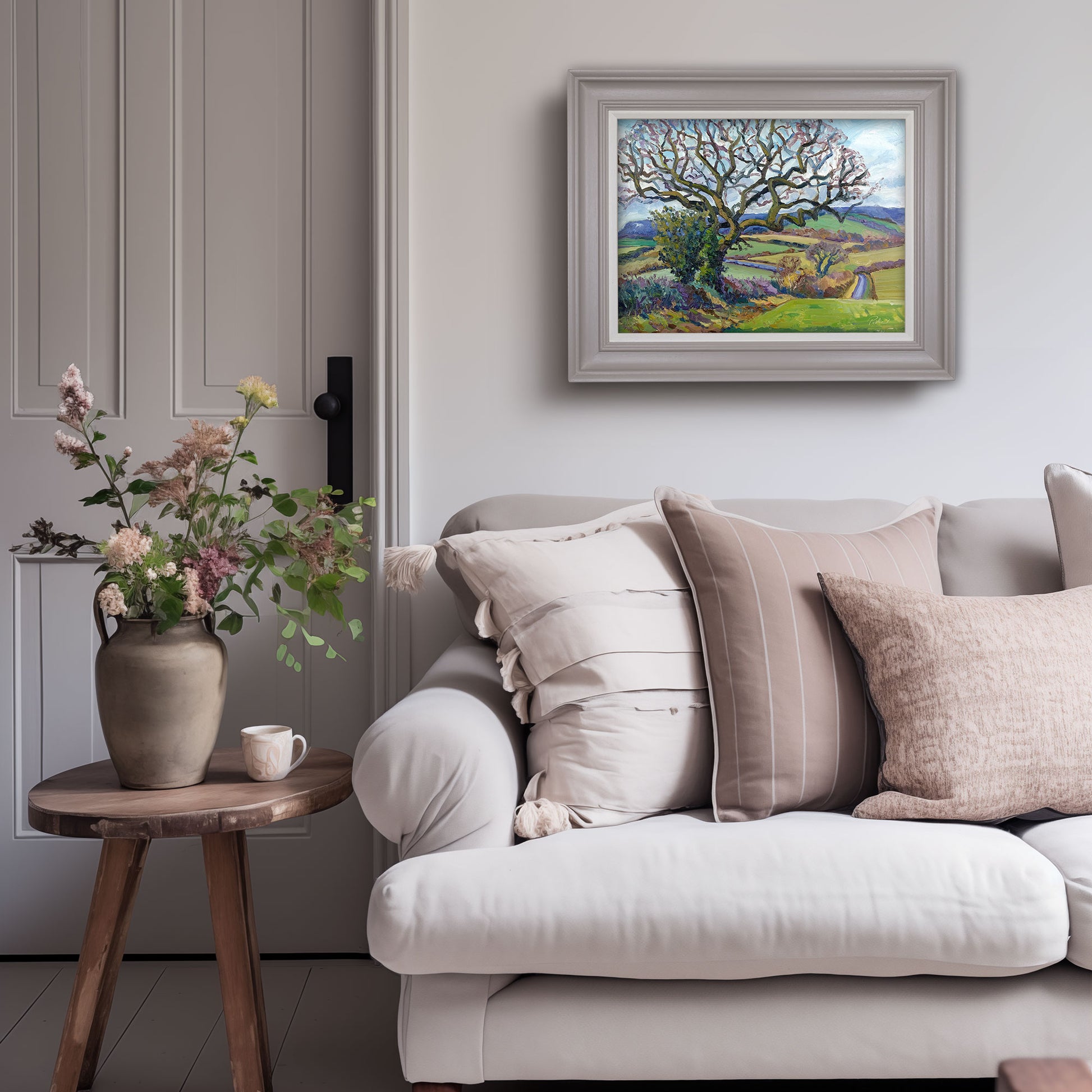 FRAMING is available for this painting in a 50mm wide profile as shown - painted in Farrow & Ball 'Elephant's Breath' with slip in 'Pointing' - please contact me for pricing.