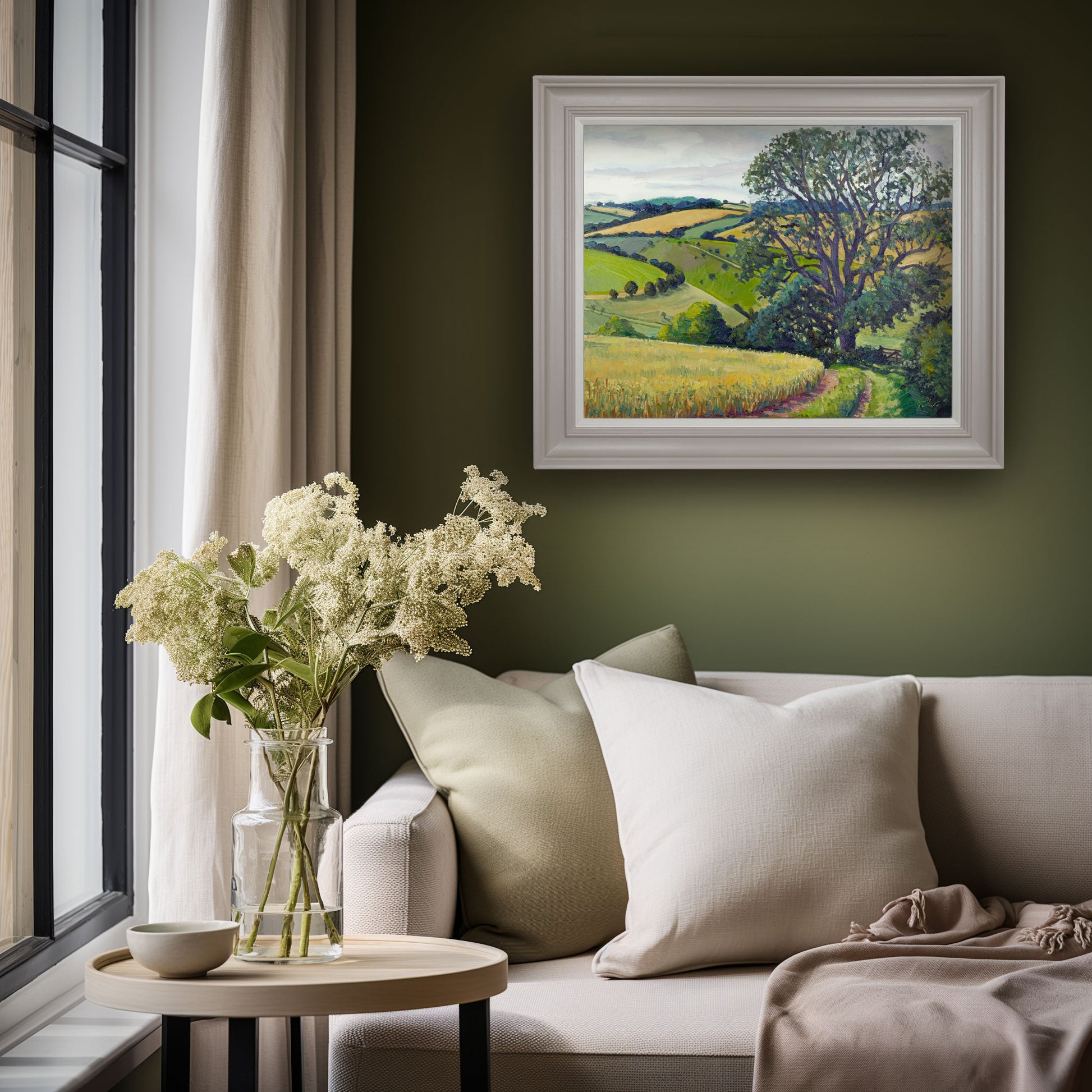 FRAMING is available for this painting in a 50mm wide profile as shown - painted in Farrow & Ball 'Elephant's Breath' with slip in 'Pointing' - please contact me for pricing.